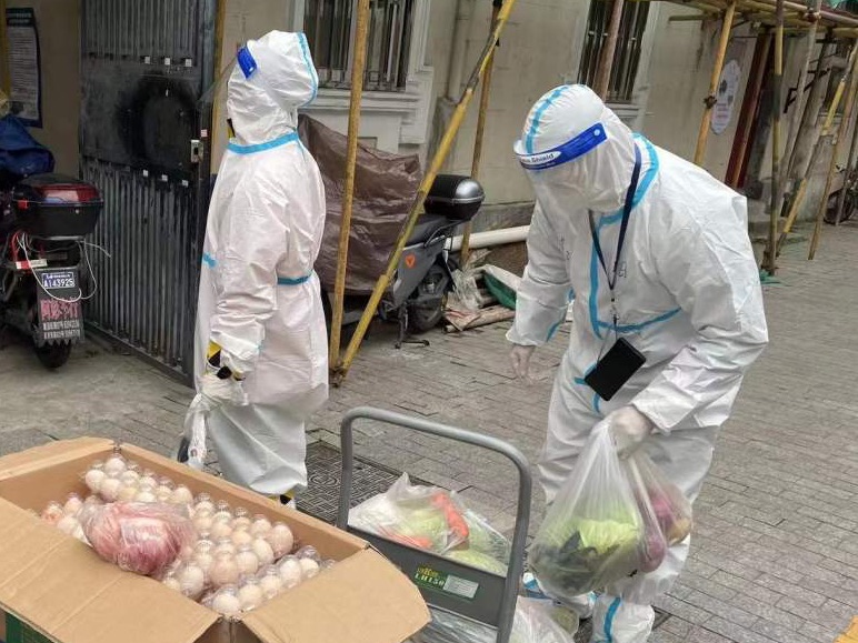 盛華為清楚地記得,有一天晚上,保供物資到了,為了讓居民在第一時間拿到,他們從晚上6點開始配送發放,一直到晚上11點半,終于把近2000份物資都送到了居民手中!袄凼强隙ǖ,但看到居民拿到物資很開心,我們累點也值得!