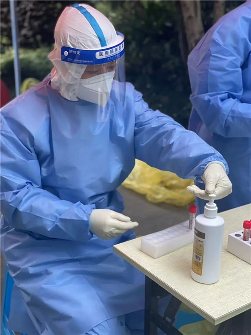 “為了充沛人手,提高采樣速度,我們還會協助醫護人員掰拭子、掃核酸碼等?!标悵嵳f。