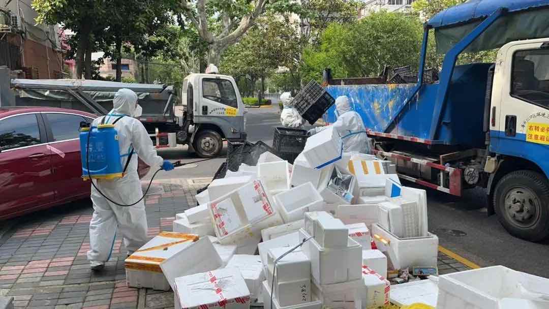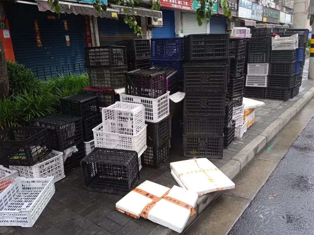 隨著疫情發展,保供力度不斷加大,至4月下旬,隨著居民團購日益頻繁、保供單位不斷增多,泡沫箱和塑料筐一時間遍布了大街小巷,嚴重影響了市容環境。