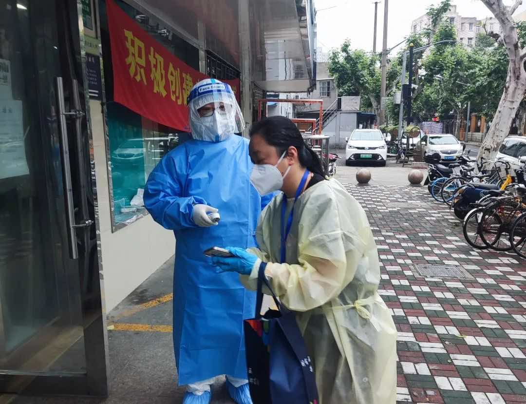 4月底5月初,戰“疫”形勢向好。為了方便居民配藥,中心在齊齊哈爾路分診部開啟了每周三次的簡易配藥門診。于是,這支行政后勤保障隊又成為一線“大白”,為保障院內環境安全擔起了預檢的責任?谡、防護服、鞋套、面屏,一整套防護裝備穿戴完畢后,就可以開啟預檢工作了。