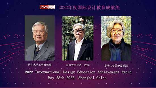 會上,主辦方宣布2022年度國際設計教育成就獎獲獎者名單,工藝美術史論家、民藝學家、教育家、圖案學家,東南大學教授張道一;原中央工藝美術學院院長、清華大學原副校長兼清華大學美術學院院長王明旨;原中國紡織大學服裝學院副院長、亞洲基礎造型聯合學會上海研究會會長、中國絲網花藝術創作研究中心名譽主任、東華大學教授吳靜芳三位杰出的藝術與設計教育家獲此殊榮。