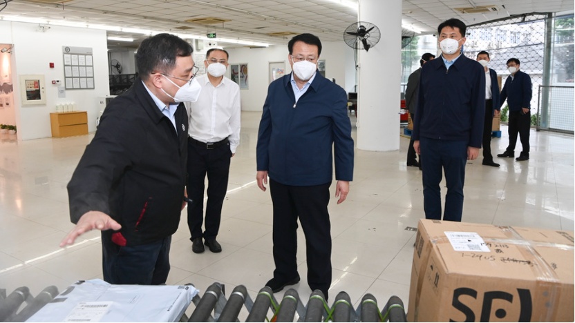 上海市長龔正在快遞網點調研。上觀新聞圖