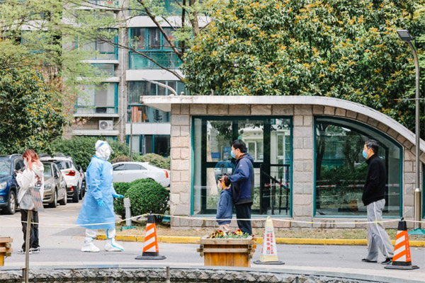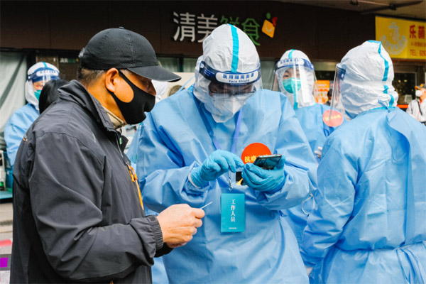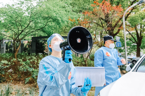 4月1日以來,小區形成了“告、喊、核、呼、敲、上”的工作做法,確保全員應檢盡檢!案妗笔峭ㄟ^樓棟微信群,以公告形式告知居民核酸檢測時間及安排;“喊”是通過高音喇叭在樓下進行呼喊;“核”是居委會干部、樓組長、物業對下樓居民進行信息審核;“呼”是通過按樓棟門鈴、電話聯系等方式進行呼叫;“敲”是對于門鈴、電話未響應的居民,由樓組長、物業按人員信息上門進行敲門通知;“上”是對臥床老人等特殊人群進行上門檢測。