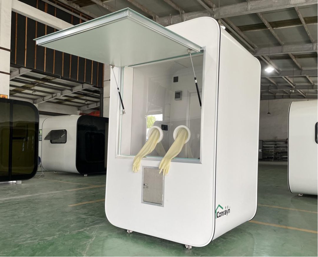 據了解,上海寬睿實業有限公司生產的移動核酸采樣亭使用纖維復合材料制作而成,整亭無焊接,具有防水、抗震、保溫等特性,并配備有PM2.5過濾器、空調等設施,能有效應對接下去的汛期和高溫,在可使用年限為50年的同時還具有可回收利用的特性。