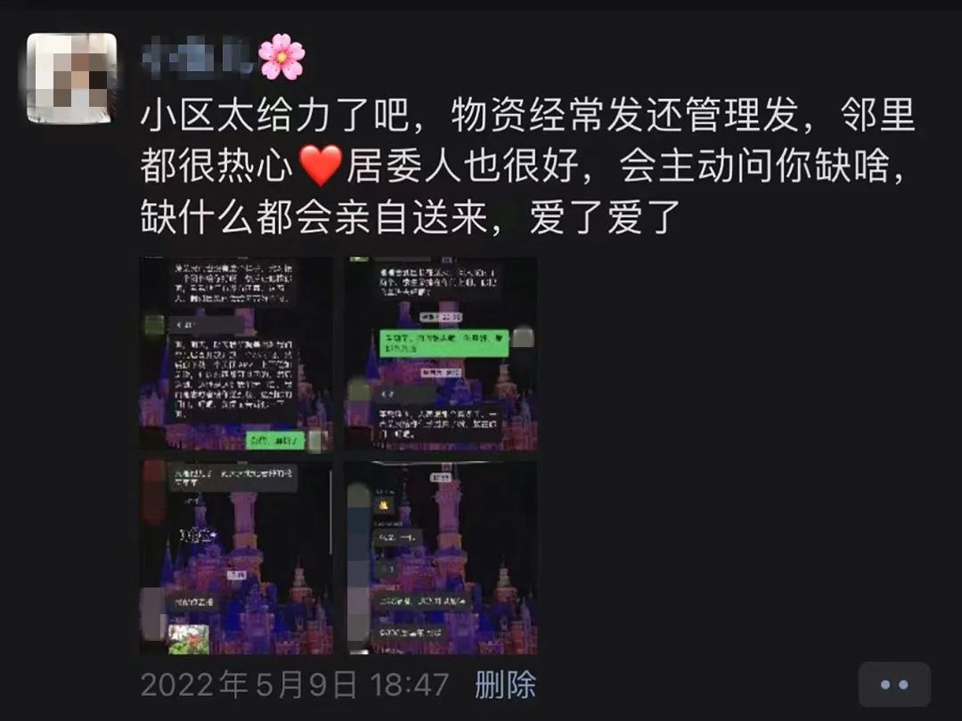26歲的小余和媽媽、弟弟住在玉二小區,三人全部核酸陽性。在方艙住了14天以后,小余出艙返家!拔乙恢睋幕丶液鬀]有吃的了,”小余說,“沒想到,街道統一發放的物資,居委工作人員都給我留著,我一回到家,他們就送來了。拿到這個大禮包以后,我特意發了朋友圈‘炫耀’!
