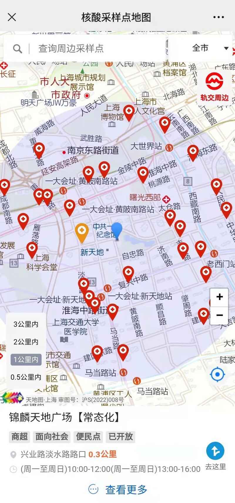 上海常態化核酸采樣點地圖更新,新增500多個軌交站點100到300米點位