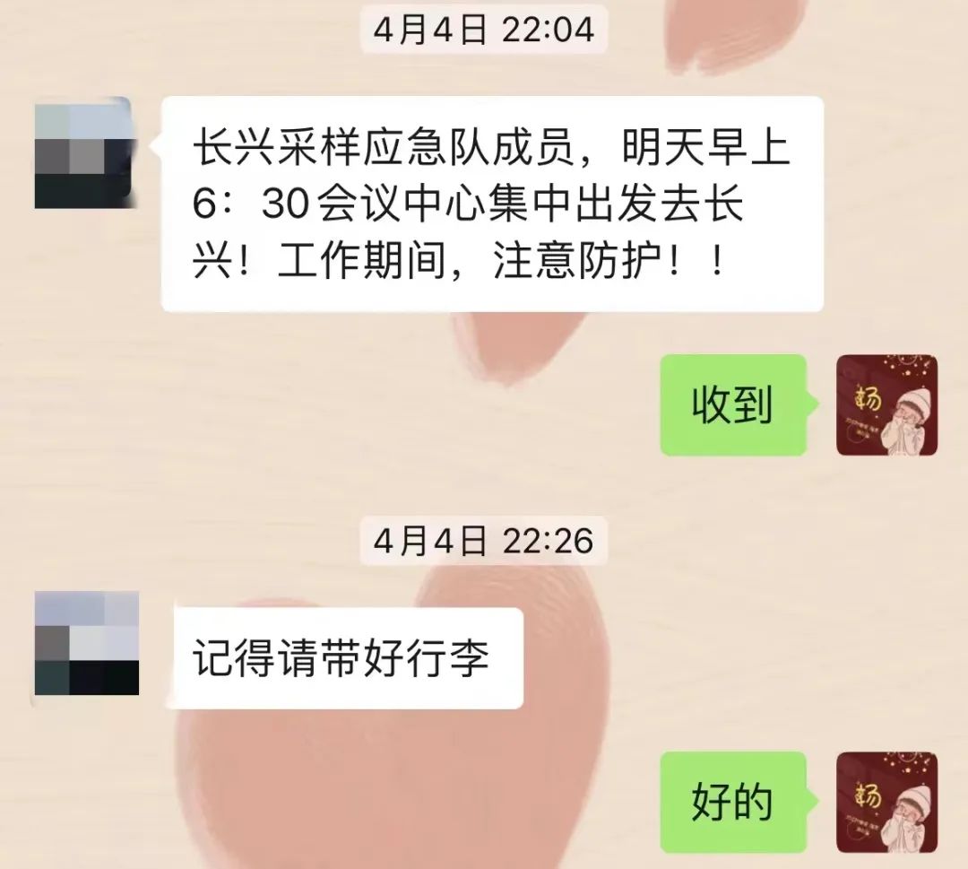 4月4日晚,楊佳璐的手機響了,微信收到了醫院緊急通知,她被派往長興開展為期十天的采樣工作,第二天早上立即出發。接到通知后,她馬上開始行動,整理起行李,她三歲的女兒看到大包小包的行李后,哭著喊:“媽媽,你不要走,我不要你離開,我舍不得你”,她雖然眼里飽含不舍,卻仍然以最快的速度整理好情緒,繼續打包起行李。