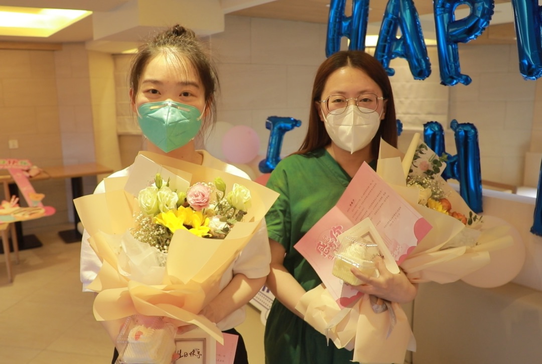 雖然口罩遮住半張臉,也難掩洪晚汐和陳文英的感動,她們說:“今年的生日雖沒有家人陪伴,卻意義非凡。特別是能在生日這天與‘戰友’們一起為抗擊疫情而戰,是一件非常值得驕傲的事情!”