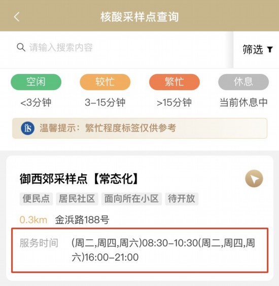 需要提醒的是,核酸采樣點并非都24小時提供服務,建議大家查詢服務時間后再前往檢測。