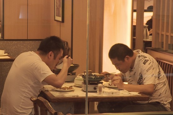 記者注意到,在堂食的餐飲店內,幾乎都是一桌隔一桌就餐,保證了顧客在用餐時的不聚集。目前,這7家餐飲店都是通過預約、錯峰、限流等方式提供堂食,且上座率不超過50%。