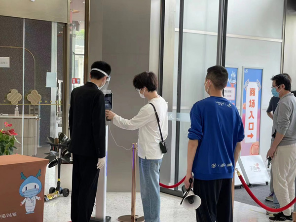 龍湖閔行天街顧客正在檢驗核酸排隊入場