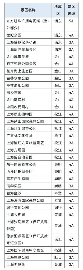 6月1日起上海將有序開放主要旅游資源位于室外或50%以上旅游項目位于室外的A級旅游景區。東方明珠廣播電視塔(室外部分)、世紀公園、辰山植物園等32家公園景點將率先開門迎客。率先恢復開放的A級旅游景區游客接待量不超過最大承載量的75%,實行場所碼、隨申碼、行程卡、核酸檢測信息(“四碼”)必檢管理;入園游客須規范佩戴口罩,自覺接受體溫檢測,提供72小時內核酸檢測陰性證明,主動掃描“場所碼”進行安全核驗。