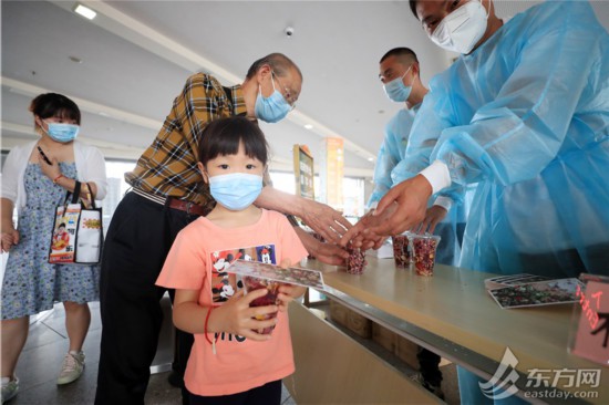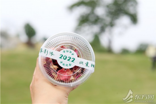 今天辰山植物園恢復開放,游客以家庭為單位可以免費領取一杯花瓣和一張卡片,打開杯蓋,花香撲面而來。