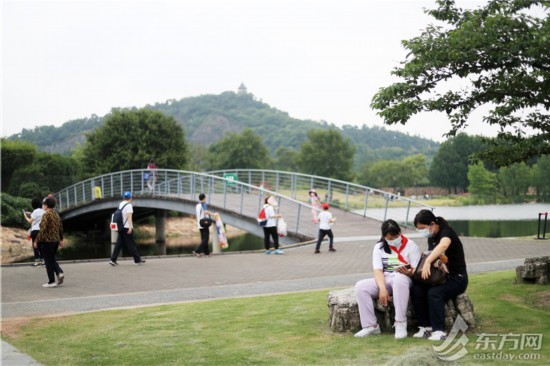 上午8點,家住普陀區的丁女士和愛人領著小孫子早早來到辰山植物園1號門口,等待入園!熬蛹艺麅蓚月,今天正好兒童節,所以第一件事就是帶孩子逛公園!倍∨空f,“小孩很興奮,早上6點就醒了,開了一個小時車,我們是第一個到公園門口的!鼻》陜和,辰山植物園里的親子家庭有不少,親近自然、認識自然、敬畏自然成為一些家長給走出家門的孩子上的第一堂課。