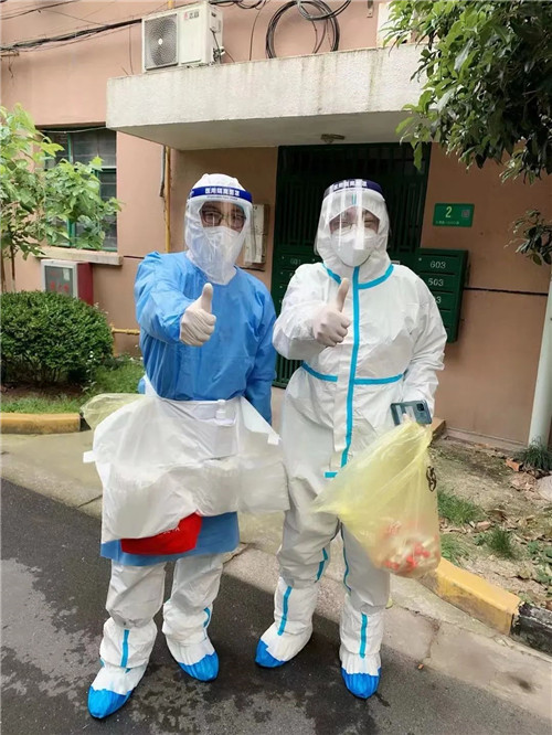 這段時間,蔣曉聞的妻子就地轉崗,在社區挑起志愿者領隊的重擔。一次,他辦事路過小區,正巧遇到妻子正在協助做核酸檢測,隔著鐵柵欄,穿著志愿者紅馬甲的蔣曉聞與穿著“大白”的妻子,隔空“合照”。