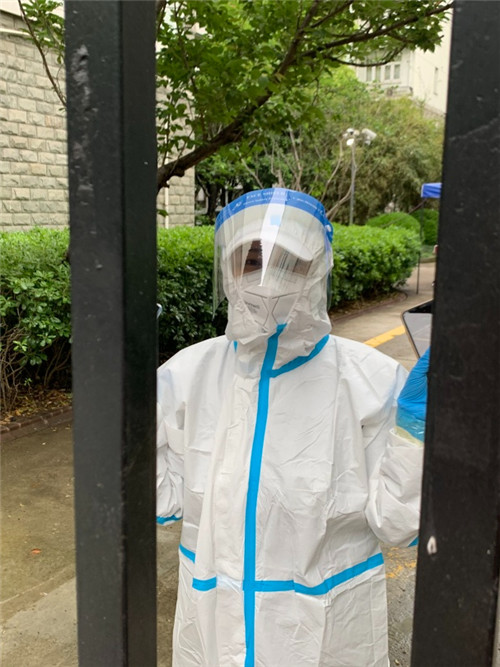 為了讓居民們放心,工作組要求,凡是可能存在風險的樓棟,全部安排上門核酸采樣,包括外出就醫的居民、返回小區休整的醫護人員等等。近半個月以來,蔣曉聞幾乎每天都在“掃樓”,為居民上門做核酸。一樓棟6層,最多時要“掃”20棟,穿著雙層的防護服,腰間還掛著消毒液、棉簽,一趟下來,隔離面屏里也已濕透。