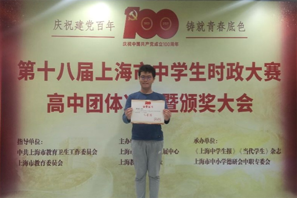 她還曾獲得2021年“童心向黨,奮斗有我”——“紅色沃土,英雄之城”紅領巾講黨史作品評選一等獎;2021年長寧區中小學生“尋訪足跡,重溫崢嶸史”微導覽二等獎等;2021年她參加了世界青少年模擬聯合國大會高級別會議,就全球兒童教育不平等的問題發表了自己的看法并起草決議草案,在該會議上獲得了“世界青少年領導力特別提名”。