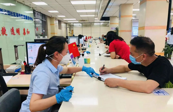 中心采取排隊限流、分流排隊,設置了預檢臺,前置預審居民的辦事材料,減少排隊等候的時間,指導居民線上辦事,亦可通過“一網通辦”完成相關業務辦理。