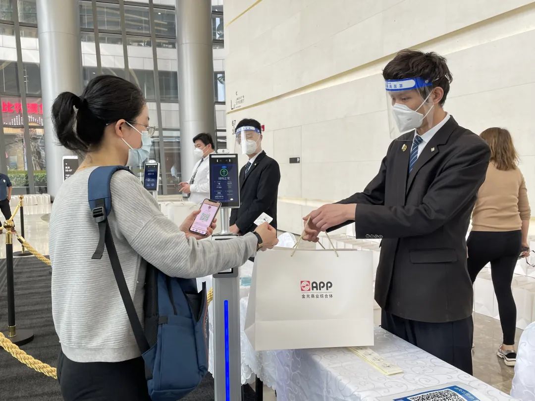 進場人員在健康碼、核酸檢測報告通過“數字哨兵”和現場工作人員核驗后,即可得到當日通行證,次日可憑昨日通行證重新查驗健康碼后“換證”。為迎接首批復工復產白領們的到來,工作人員還為他們送上了復工伴手禮。
