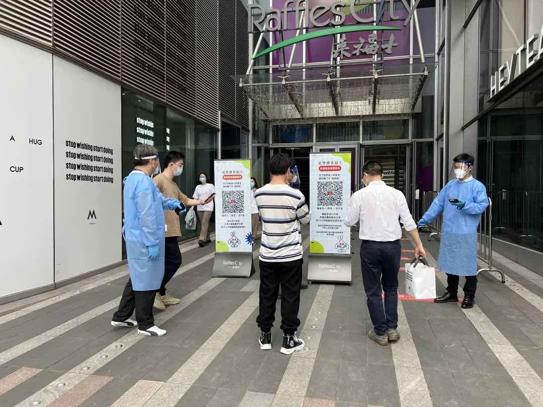 上午10時,在商場公平路入口處,陸續有市民掃“場所碼”后進入商場。根據防疫規定,目前,商場的客流總量不超過最大承載量的75%,市民入場時須出示72小時內核酸陰性報告、健康碼并全程佩戴口罩。