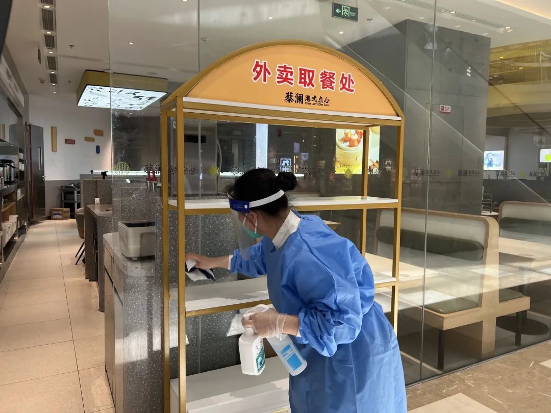 據悉,除辦公樓出入口管理和快遞外賣管理,白玉蘭廣場商務樓還加強了公共區域全面消殺,針對大堂、電梯廳、通道等重點區域定時定點進行消殺,嚴格執行防疫措施,讓白領們安心復工。