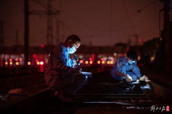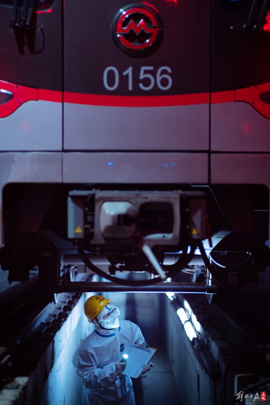維保工務是地鐵鐵軌的維護者,疫情閉環管理期間,他們定期對軌道進行探傷檢查,及時發現鋼軌可能出現的裂紋,或是檢查連接鋼軌的螺絲是否松動。