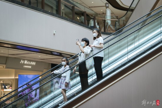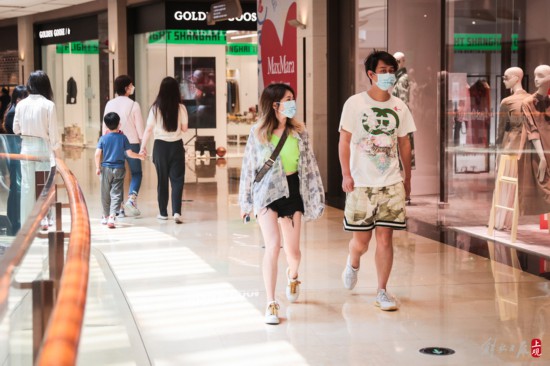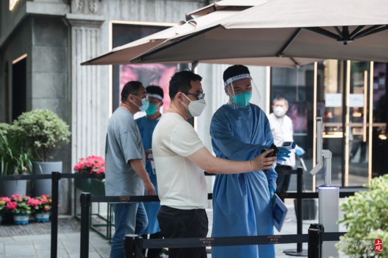 上觀新聞記者上午來到興業太古匯、新天地等商場看到,所有入口處已部署好“數字哨兵”和“場所碼”,在場域就近便利處設立常態化核酸檢測點,并按要求每日定時全場消毒。