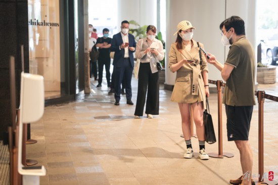 十點開始進入興業太古匯的顧客,按照要求掃好“數字哨兵”和“場所碼”。