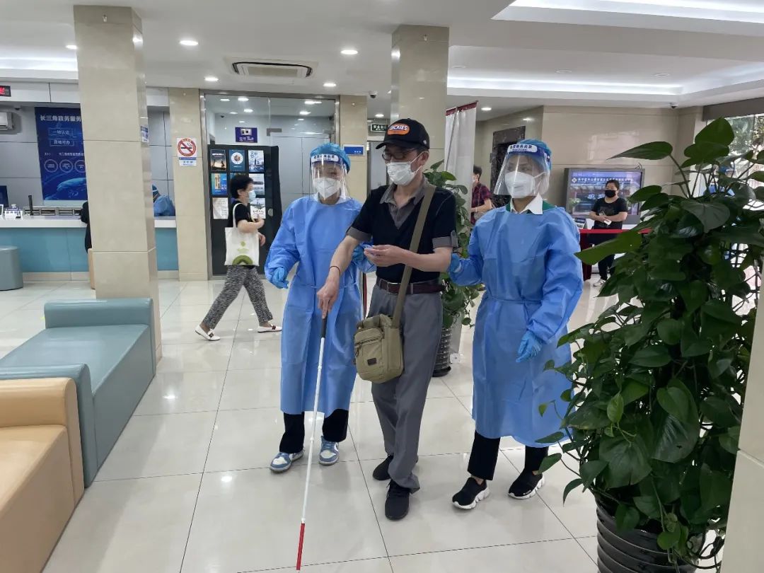 除此之外,天山路街道社區事務受理服務中心還為殘障人士開通綠色通道。家住茅臺居民區的張老伯是一位視障人士,此前他要辦理敬老卡,但受疫情影響遲遲沒有申請,這次聽說社區事務受理服務中心也要恢復開放了,就帶著相關的材料獨自前往,然而匆忙的他并未提前進行預約,好在綠色通道提供了便利!罢娴暮芨兄x這些工作人員幫助我,現在我就期待早點拿到敬老卡了!