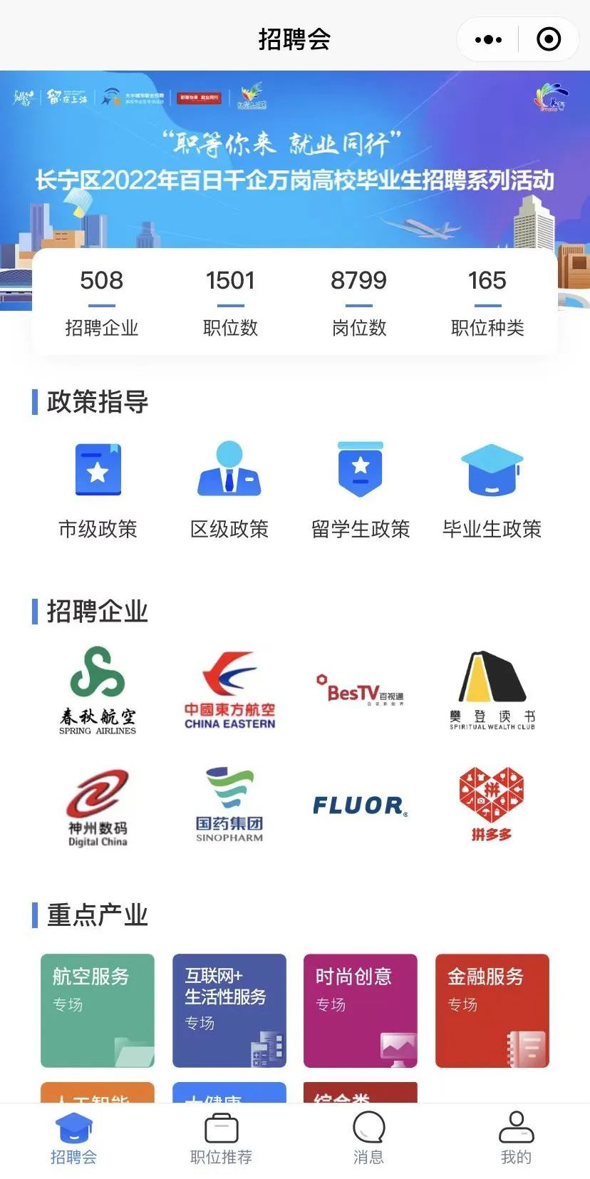 本次活動采取線上招聘、求職輔導、直播帶崗等多種形式,并將根據疫情防控形勢發展,適時開展線下招聘活動。區人社局在招聘工作實施中,通過多種形式將高校畢業生普遍關心的居住證積分、人才引進落戶、安居工程等市區兩級人才政策送入高校,助力畢業生就業“加速度”,同時通過宣傳長寧政策優勢和產業特點,增強畢業生“留在長寧”的意愿。