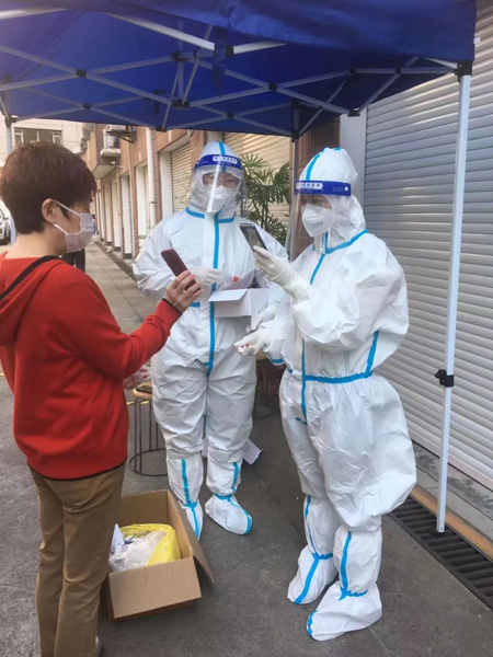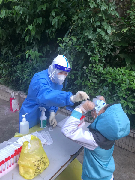 很榮幸通過了虹口區首批核酸采樣員的培訓,參與了近期對居民區的核酸采樣工作!按┟摲雷o服的關鍵步驟、采樣過程中每采樣一個人一定要手消毒一次、采樣時盡量拿在棉簽棒末端、手套不能碰到被采樣人員……”每個要點都在上崗前牢牢地記在腦海里一遍遍的重復。從最開始的緊張害怕,到熟練從容,我逐漸克服了自己的心理障礙并做得越來越好。