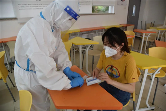 在演練中,高二(2)班一學生體感不適,于是學校立即啟動疫情應急處置預案,各部門在第一時間迅速就位,各自分工明確,密切配合。衛生老師馬上穿好防護服將此同學從教室中轉移至學校臨時隔離點,班主任則留在教室負責管理其余學生。衛生老師對該名學生進行復測體溫以及2次抗原自測,結果均為陽性。隨即,衛生老師通過電話向校長報告情況,并通知學校消殺人員組織相關消殺工作!跋嚓P情況我們也會向有關部門匯報,并立即對學校進行封閉管理、對師生開展核酸檢測等工作! 上海市民星中學相關負責人說道。