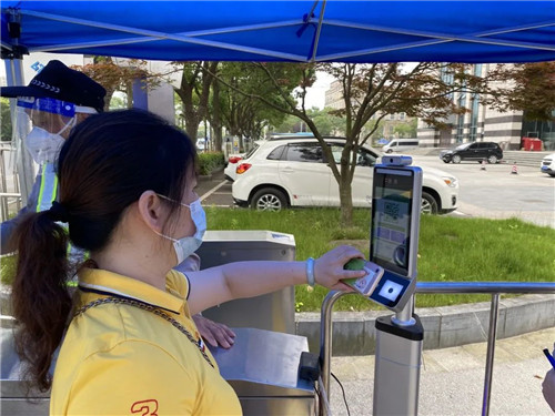 6月1日上午8時,明谷科技園正式復工復產恢復營運。在中春路入口,無論車輛還是人員進入園區,都需要通過出示“隨申碼”,掃描“數字哨兵”進行健康狀態核驗和信息登記。