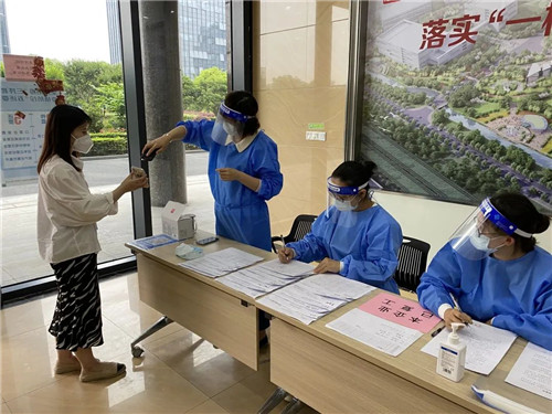 開園當日,園區倡導員工“分段到崗”,按每半小時開放一個樓棟“壓茬”入園,減少人員聚集。并建議員工踐行“兩點一線”,非必要少出行,防疫意識不放松。