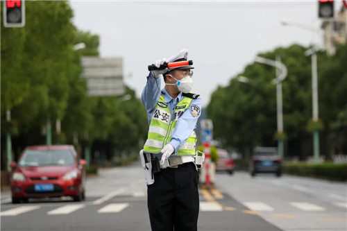 上午6時15分,閔行公安交警支隊二大隊民警謝德宣、輔警張勇已經在新鎮路農南路路口開展排堵保暢工作。謝德宣表示今天是恢復正常秩序后的第一個“周一早高峰”,路面車輛明顯增多。因為七寶中學只有高二、高三的學生返校,總體流量可控,秩序井然,早高峰期間未發生交通事故和出現擁堵情況。
