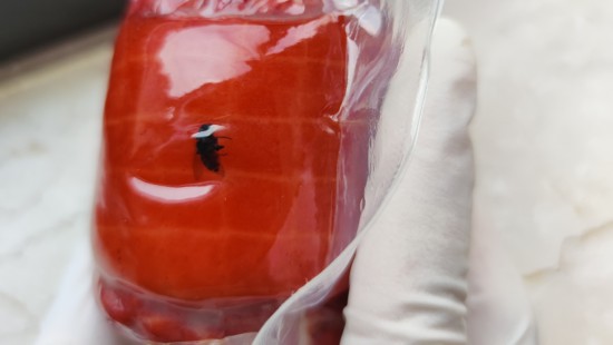 有居民收到物資后,反映一包真空包裝醬香肘的袋內有一只蒼蠅。