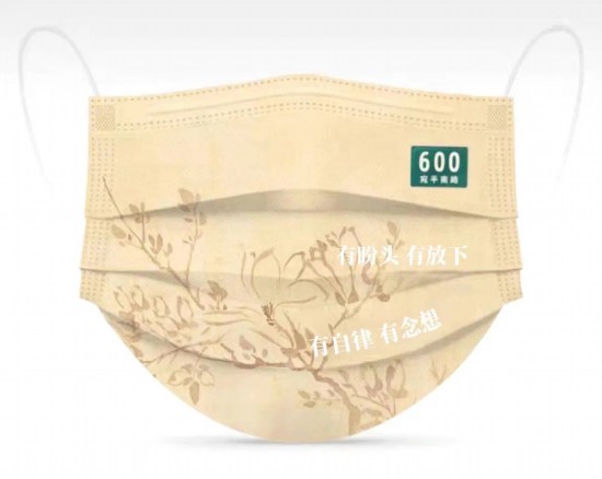 一款口罩印有“精神食糧“四個字”,希望大家補充精神食糧,舒緩慢生活。