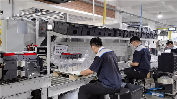 良信生產車間,工人正抓緊生產斷路器配電產品。良信供圖