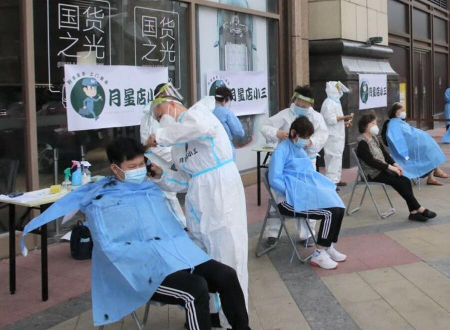 環球港開業后,商場外的“月星店小三”便民理發點受到顧客和周邊居民的歡迎。月星集團供圖