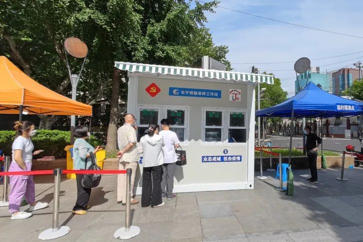 除了社區以外,為滿足轄區白領日常核酸檢測需求,天山路街道還在轄區重點樓宇覆蓋常態化核酸檢測點,并且采樣時間也相應進行了優化。
