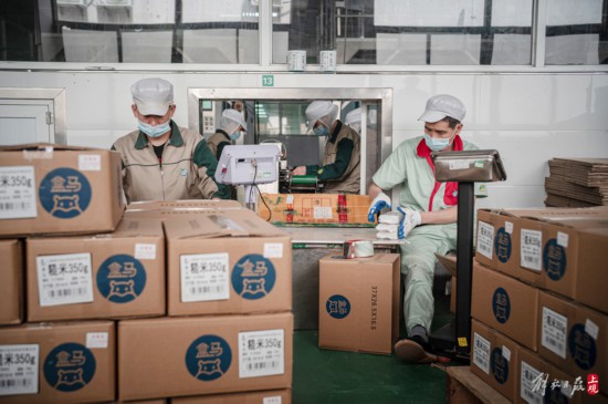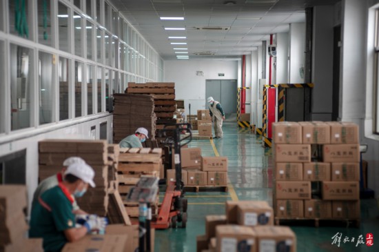 隨著上海復工復產的持續推進,部分企業正以沖刺速度恢復正常的生產秩序。2022年6月7日,記者走訪金山工業區某食品生產廠家,全廠9個車間近40條流水線正馬力全開,將采購自全國各地的南北貨商品進行打包封裝,再運往全國市場。