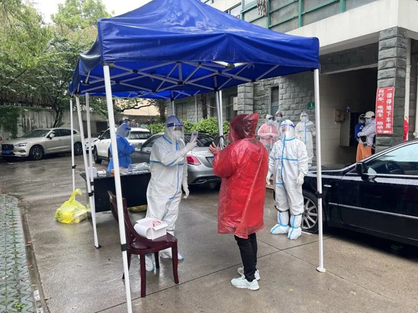 兩個月來,只要有核酸檢測的日子,清晨7點,志愿者們提前做好核酸篩查前的準備工作。大家分工明確,分別負責喊樓、登記、掃碼、輔助、維持秩序等。