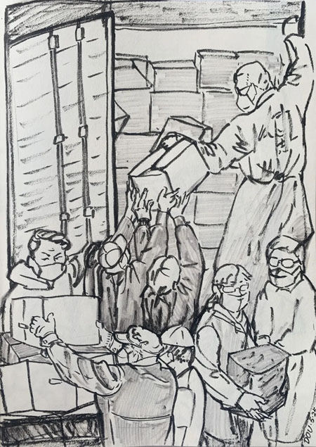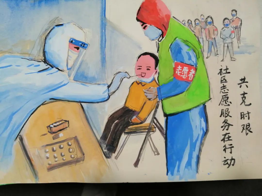 “志愿者非常無私,做了很多的事情。我把畫給我認識的一個志愿者看,他說非常好,可以放在小區微信公眾號里,對志愿者可以起到很大的激勵作用。我的作品能為抗疫起到一些作用,挺開心的!眲⒍苟拐f道。