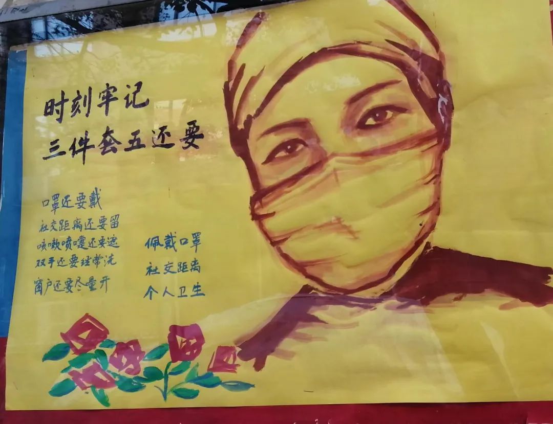 佩戴護目鏡和口罩,只露出兩只眼睛、全副武裝的“大白”;身穿藍色馬夾、舉著喇叭“叫號”的居民志愿者……在復旦小區主干道一側的宣傳欄里,一幅幅水粉畫將過去兩個月那些熟悉的場景,鮮活地展現在居民眼前。