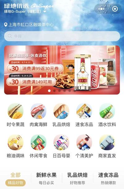 線上:在Gsuper綠地優選小程序下單,無接觸配送服務