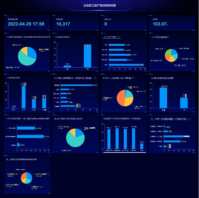 排摸重點企業需求的第一步便是開展線上“云調研”,深入了解復工復產難點堵點。調研期間,普陀區稅務局共收到10317份有效問卷,并在此基礎上羅列出一些共性問題,形成專報并協同相關部門予以回應!罢{研內容圍繞的是企業整體情況,在此基礎上,我們會結合具體財報、開票等稅收數據統合分析!