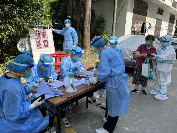 在開展常態化核酸檢測之初,梅六居民區遭遇了排隊等待時間過長等問題。為在短時間內迅速攻堅管理環節中的薄弱項,“第二梯隊”隊員主動出擊,配合居委會做好秩序維護和外來人員勸退等工作!懊刻煜铝税,他們都是先去核酸亭幫忙然后才回家!睋妨用駞^黨總支書記章小靜透露,“得益于他們的幫助,目前基本能在20:00前準時關門,送檢時間也有了保證!