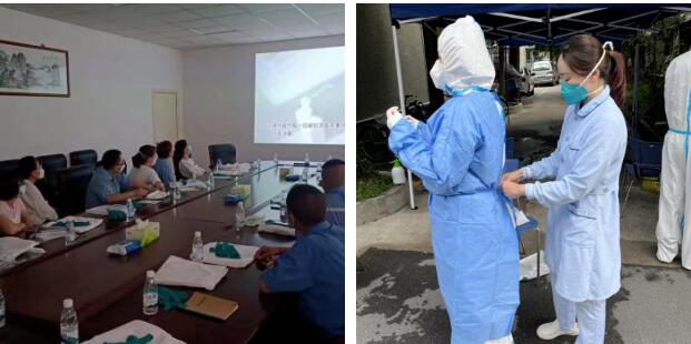 采樣系統的使用、防護裝備的穿脫、采樣場所的消殺、醫廢處理……線下實訓教學內容緊湊,學員認真聽講?紤]到人員線下的安全問題,工作小組嚴格落實各項防疫規定,為避免人員流動,減少感染風險,工作小組以居民區、企業園區為單位,分批進行線下實訓,同時嚴格控制培訓人數,確保培訓現場的安全有序。