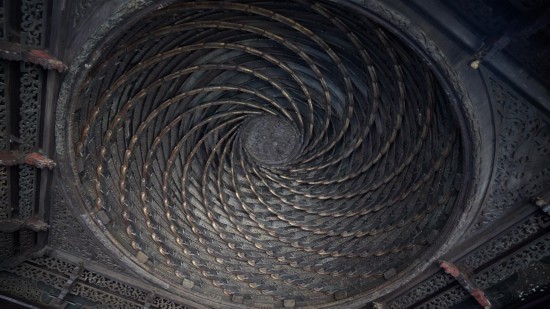 過去六年間,團隊共對1000多件木構件和1600多件磚石構件進行了逐一修復,并一一復原到了新建成的天后宮建筑上。其中,天后宮戲臺螺旋形藻井由700多個構件組成,是建筑中最出彩的部位之一。工匠們運用豐富的經驗,結合三維模擬等技術手段,摸清了藻井各個部件的之間的邏輯關系,最后準確還原了藻井的模樣。