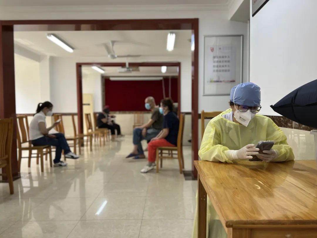 據了解,由于是臨時接種點,室內不設健康云一體機,沒有手機的居民可以將身份證交給居委干部,由他們代為申領紙質接種條形碼后轉交!拔沂莵斫臃N第一針的!本用窳职⒁陶f,“我沒有手機,本來還擔心不能順利接種。沒想到到了現場以后,我把身份證交給居委干部,等了大概十分鐘,他就帶著我的接種條形碼回來了!